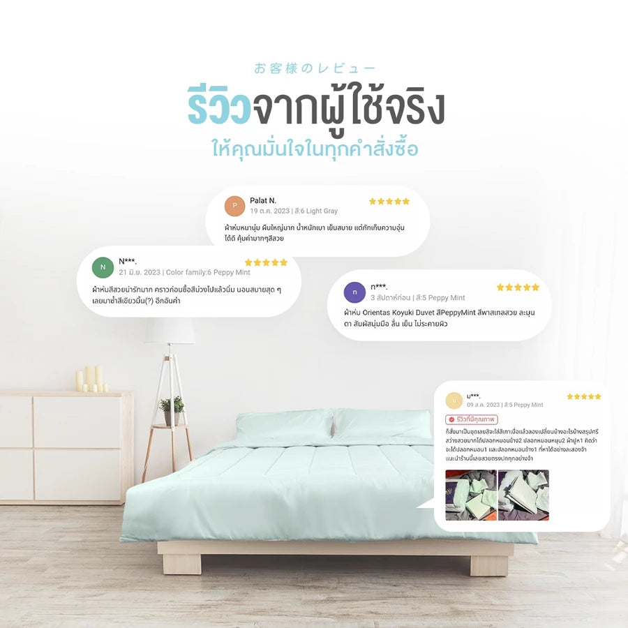 👉ผ้าห่ม ผ้านวมที่ไม่คิดว่าจะเย็นได้ขนาดนี้! เนื้อผ้าคิดค้นมาเพื่อคนขี้ร้อนและเพื่อประเทศไทยโดยเฉพาะ เย็น สบาย ระบายอากาศได้ดีม๊ากกก นอนห้องพัดลมก็ไม่ร้อน ไม่อึดอัด นอนห้องแอร์ก็กันลมหนาวได้อุ่นสบาย ซุกตัวอยู่ใต้ผ้าห่มได้นานเท่าที่ต้องการ แถมขนาดยังใหญ่ สะใจ อัดเส้นใยขนห่านเทียมแบบแน่นๆ เต็มๆ ผืน เรียกได้ว่า "Orientas Koyuki" เป็นผ้าห่มที่ กล้า ท้า ชน กับผ้านวมของโรงแรมระดับ 6 ดาว+++