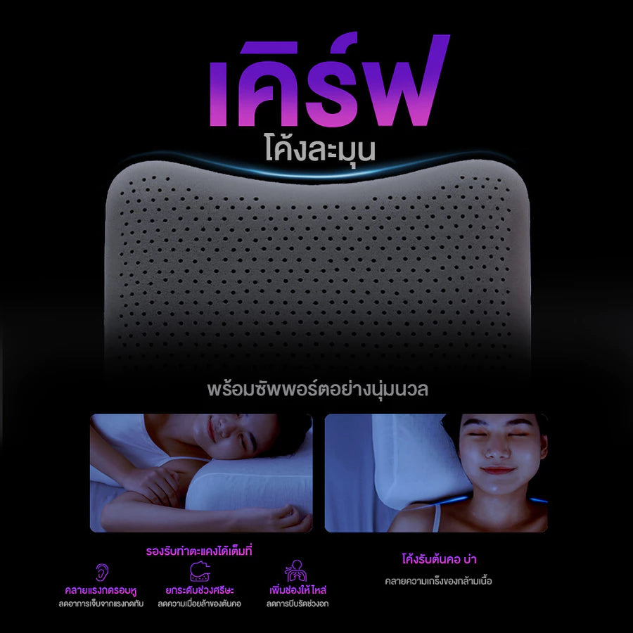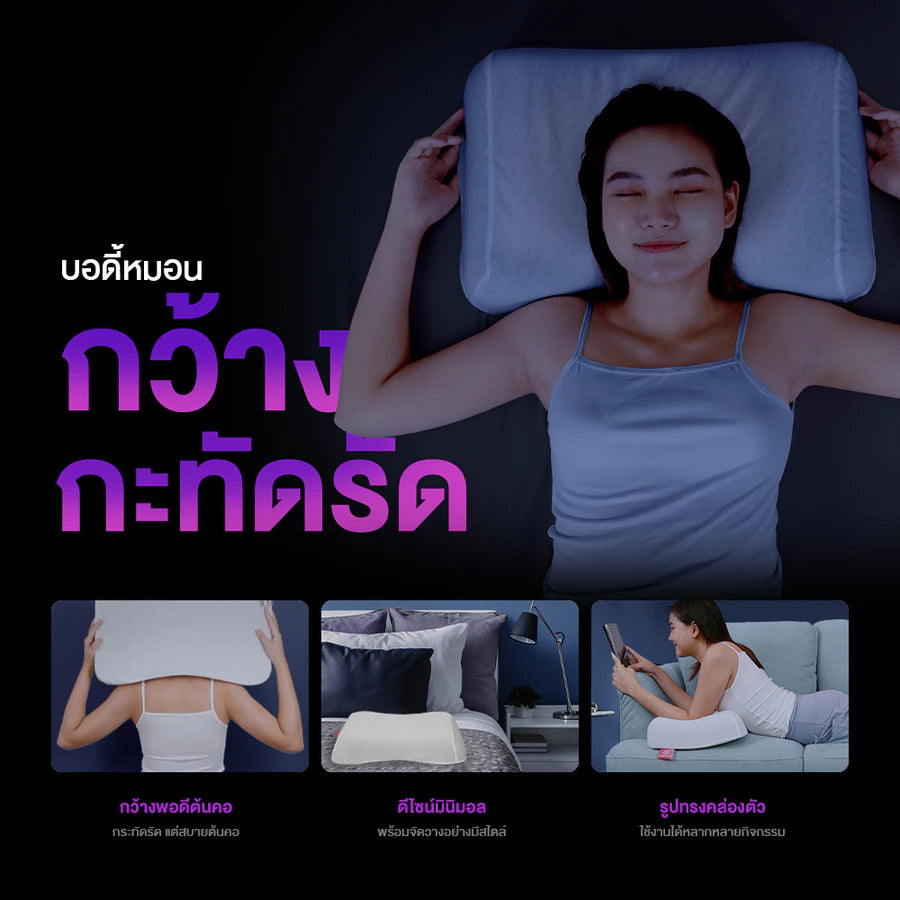 7. เป็นหมอนเพื่อคนที่ชอบนอนตะแคงโดยเฉพาะ เพราะเป็นหมอนที่เมื่อนอนลงมาแล้ว จะไม่รู้สึกเจ็บกกหู และยังช่วยให้ศีรษะสูงขึ้นเพื่อการหายใจให้นอนสบายยิ่งขึ้นกว่าเดิม