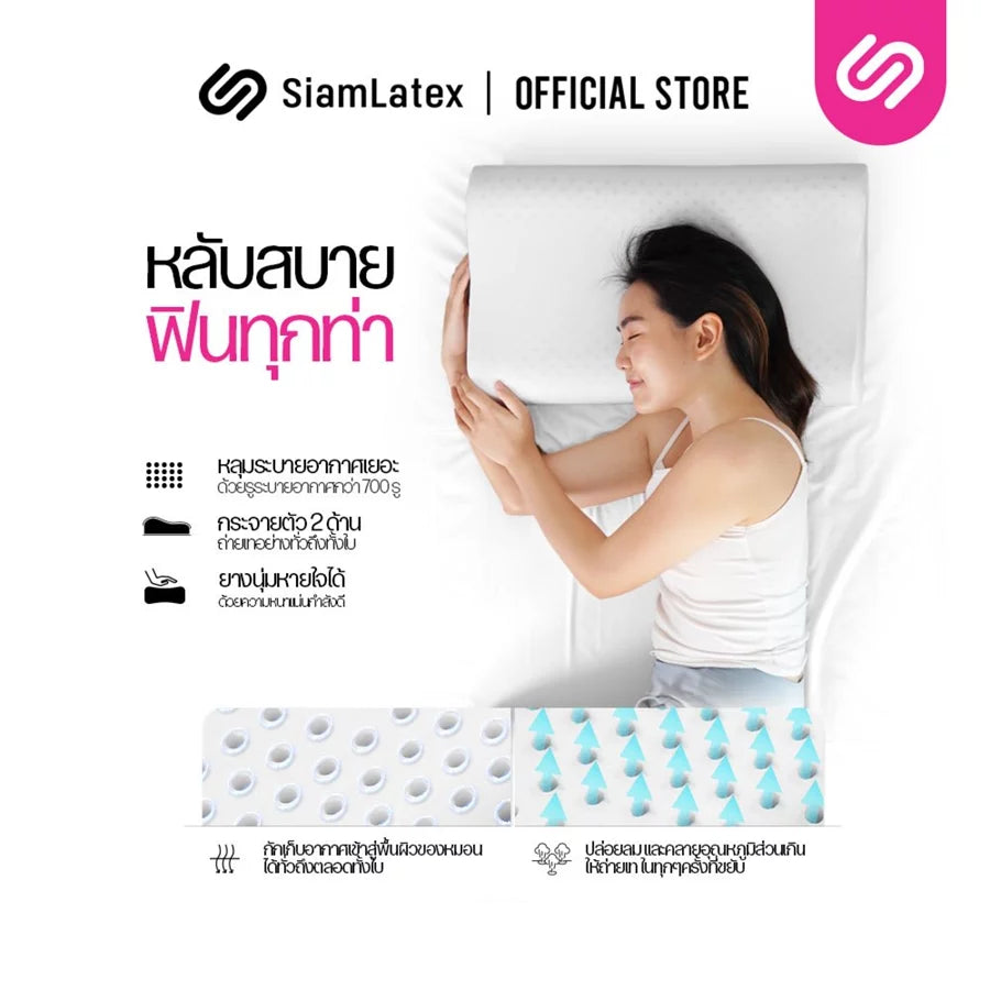 💗 SiamLatex หมอนยางพารา รุ่น Curve Zen ลดการปวดต้นคอ นอนนุ่มสบาย ไม่เมื่อยล้า ใช้ได้ทั้งครอบครัว รองรับบาลานส์ของกระดูกสันหลัง ช่วยให้หลับง่ายขึ้น นอนสบายมากขึ้นกว่าเดิม💗