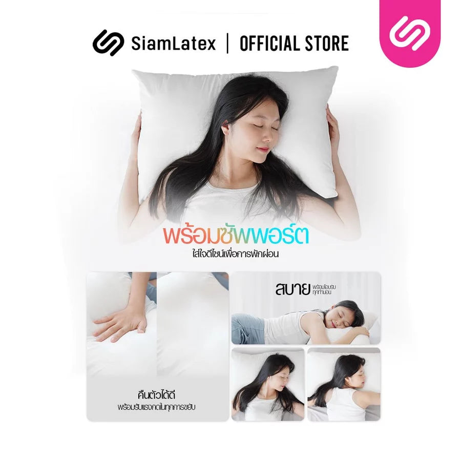 SiamLatex Essential 3D หมอนไฟเบอร์ เพื่อสุขภาพ รุ่น Essentials หมอนคุณภาพสูง นิ่ม ฟู นอนสบาย เหมาะกับคนติดหมอนสูง เนื้อผ้านุ่ม ไม่ระคายผิว หมอนเย็น ไม่รู้สึกร้อนหรืออึดอัดในขณะใช้งาน เป็นหมอนทรงแสตนดาร์ด ให้พื้นที่หมอนกว้าง ใหญ่ พลิกตัวได้อย่างอิสระ